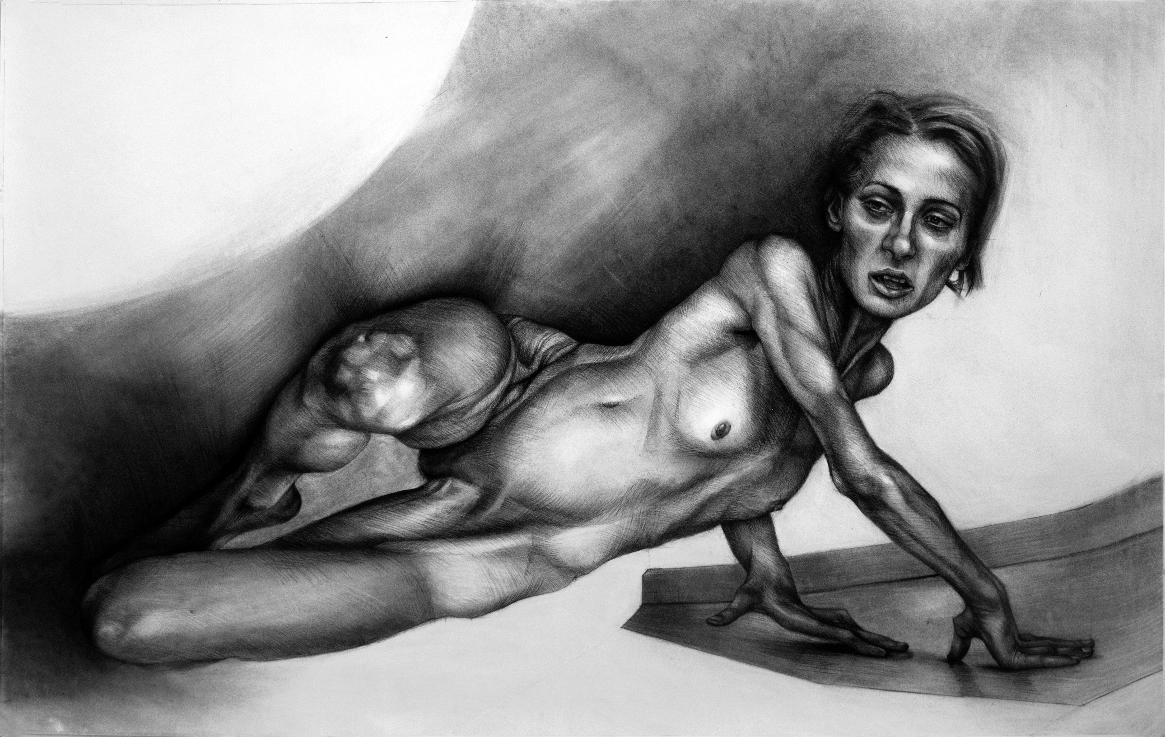 Charcoal & Oil on Shellacked Paper