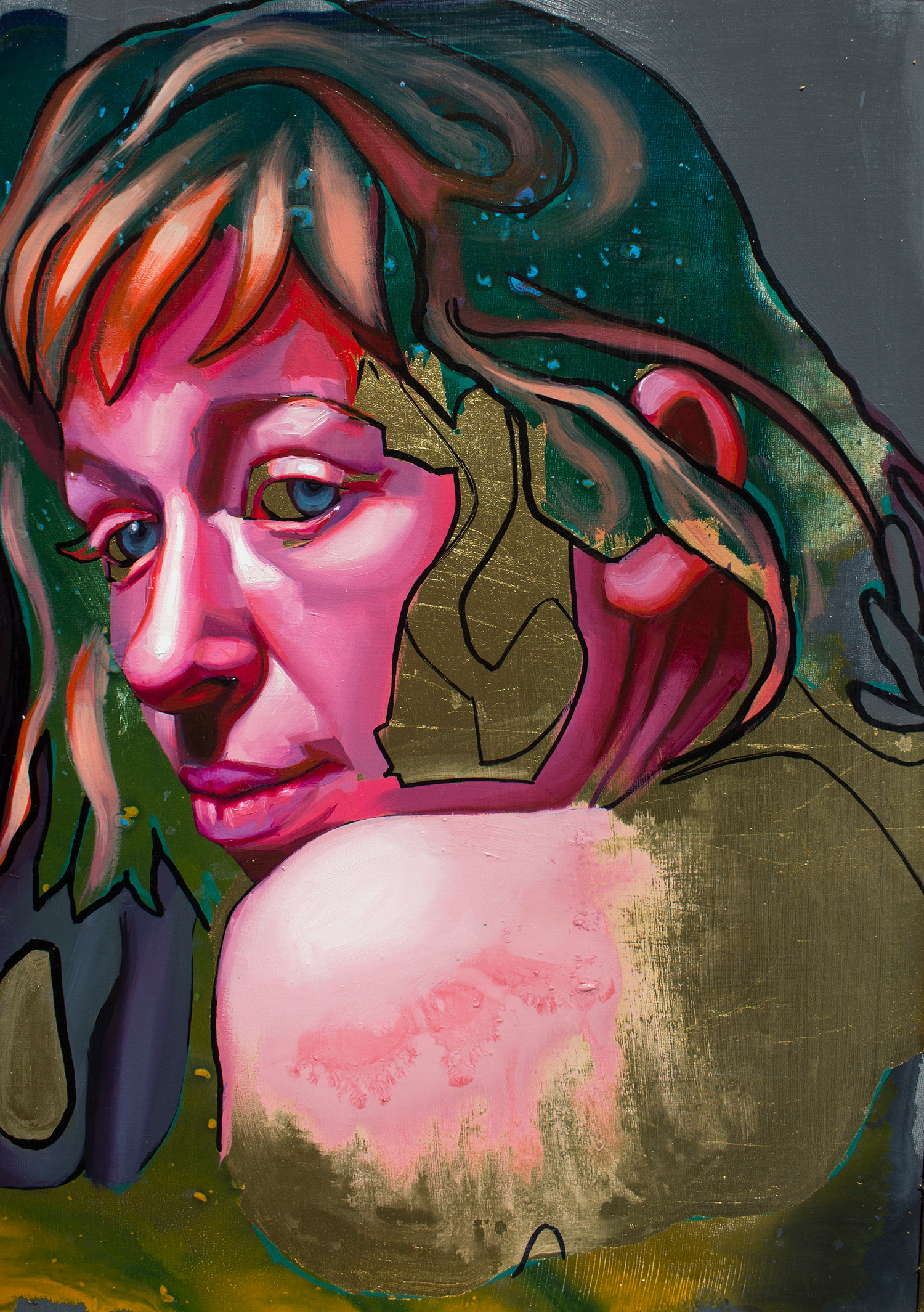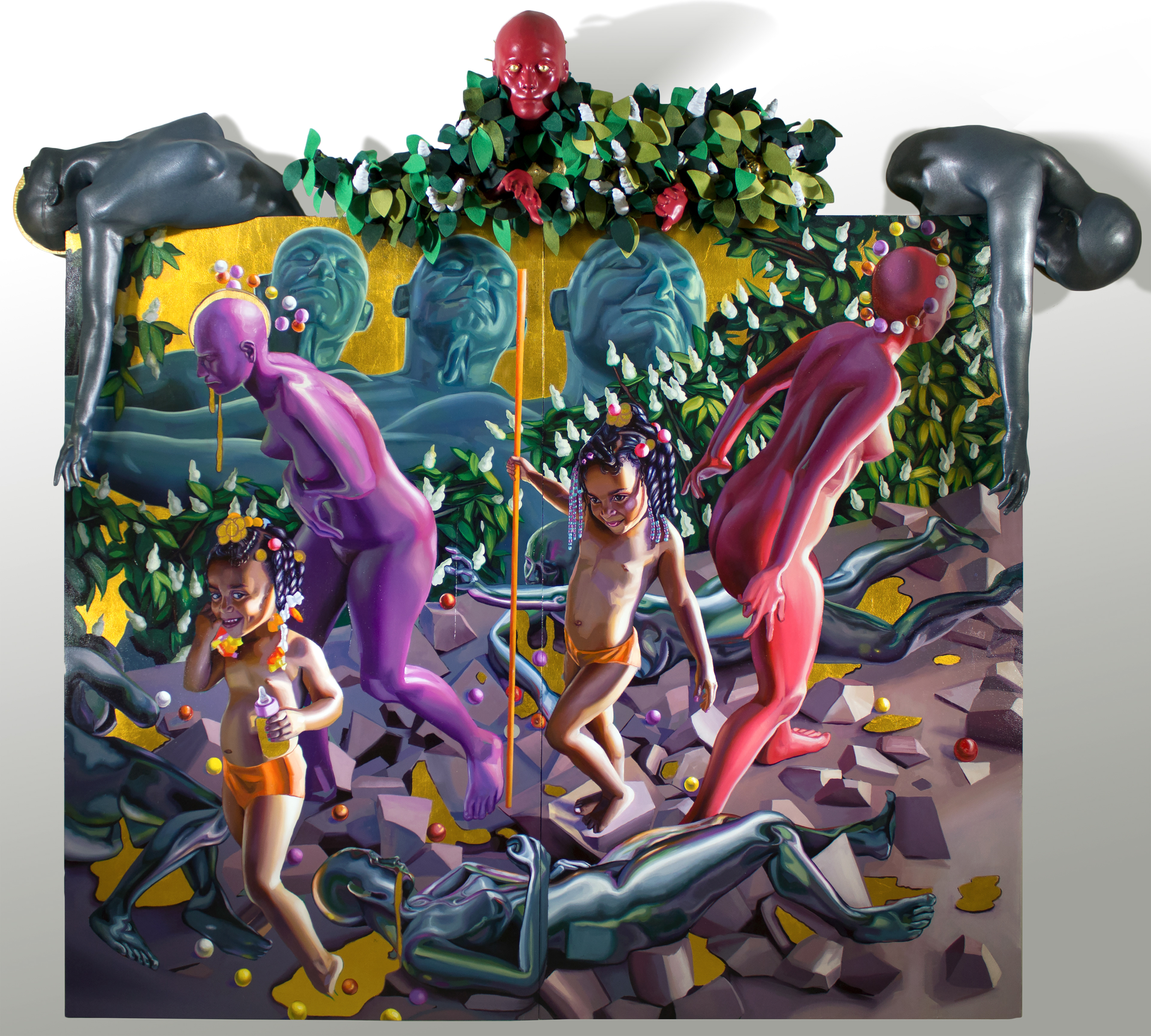 Oil and Gold Leaf on Panel / PLA, Felt, Epoxy Resin